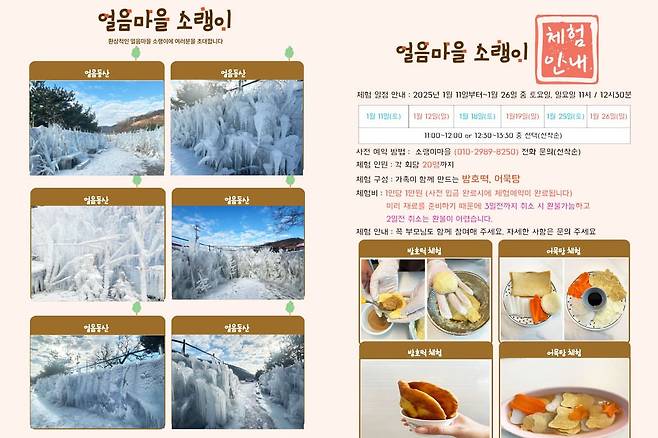 '얼음마을 소랭이' 행사는 매년 겨울방학 기간에 개최되며, 올해는 1월 8일부터 2월 2일까지 운영됩니다.