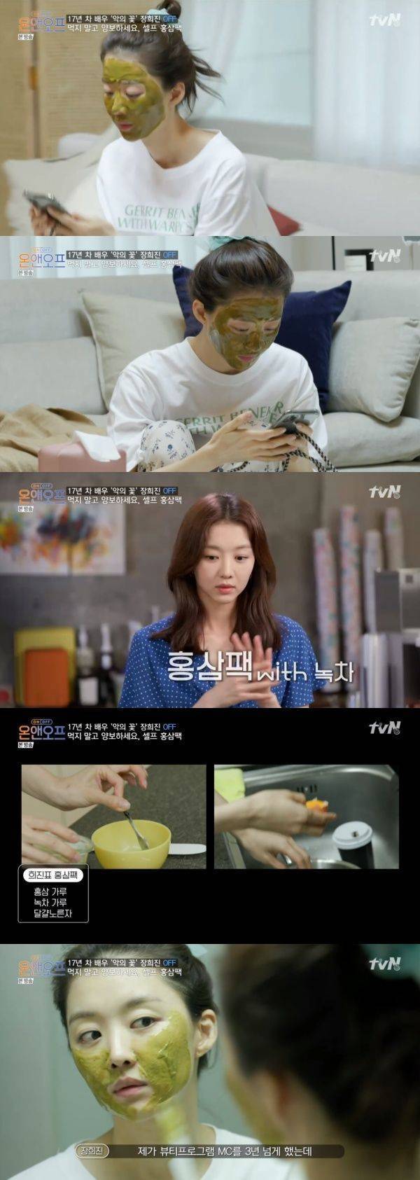 장희진이 셀프 홍삼팩으로 피부를 관리했다.