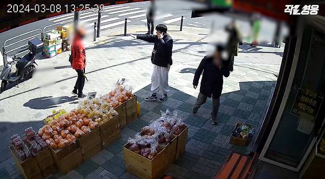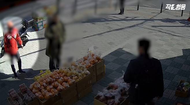 괴한이 바짝 약이 오르면서 상황은 더 험악해졌습니다. 과일가게 앞엔 교차로가 있어 유동인구가 많은 데다 매장 안엔 가족들도 있었습니다. 사장님은 괴한을 유인하기로 했어요.