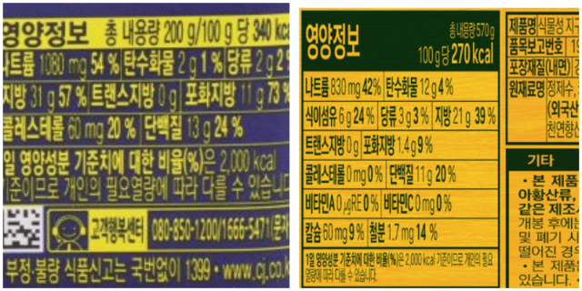 영양 정보는 어떨까, 요약하면 단백질은 비슷, 지방은 지구식단 햄이 훨씬 적었어요. 많은 분들이 가장 궁금해하실 단백질부터 자세히 살펴볼게요. 스팸이 13g, 지구식단 햄 11g으로 지구식단 햄이 2g 적었지만 뭐, 이 정도면 비슷한 수준. 지방류는 확실히 지구식단 햄이 적었어요. 지방이 21g으로 스팸 31g보다 10g이나 적더라고요. 포화지방도 1.4g으로 스팸의 11g보다 훨씬 적어 좋았어요. 스팸은 표기가 안돼 알 수 없는 칼슘이나 철분도 많이 포함돼 있더라고요. 아쉬운 점은 나트륨. 물론 스팸보다는 250mg 적은 830mg이었지만 하루에 필요한 나트륨량의 무려 42%에 달하는 양이에요.