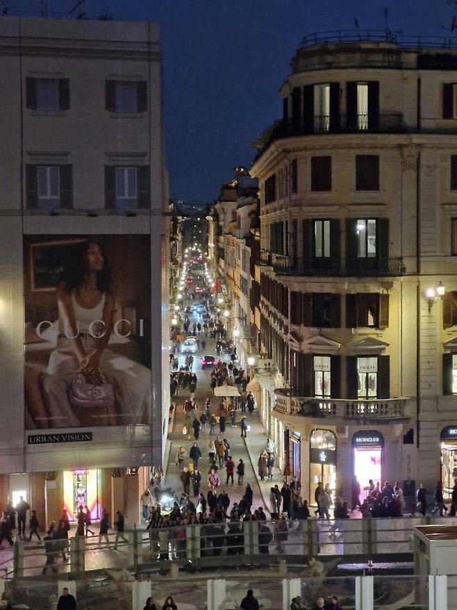 근처 스페인 광장은 밤에 가야 이쁘다. 17세기 이 곳에 스페인 대사관이 있어서 붙여진 이름이라고 한다. 영화 로마의 휴일에 오드리햅번이 나와서 여행객들의 사랑을 받는 광장이 되었다. 이 광장 위의 137개 계단은 스페인 계단이라고도 불린다.