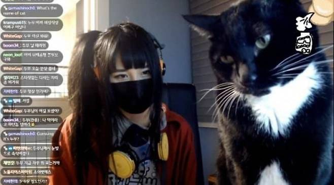 결국 고양이의 예상치 못한 돌발행동 바람에 상황이 역전된 것이죠. 얼굴이 공개된 이후에는 아예 마스크를 벗고 고글을 끼고 방송을 하고 있다고 합니다.