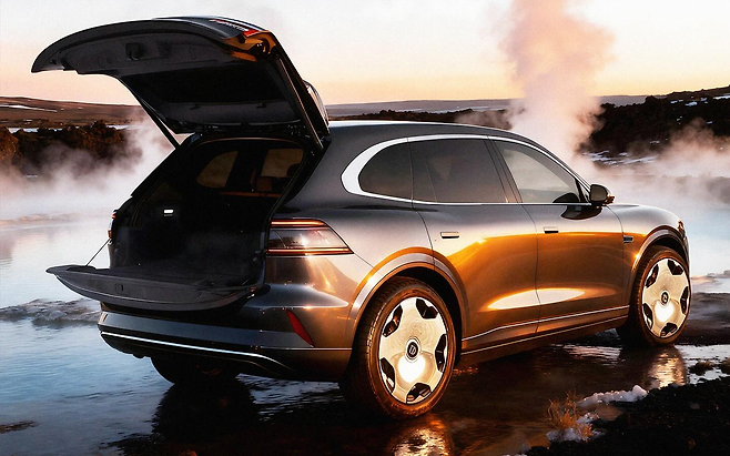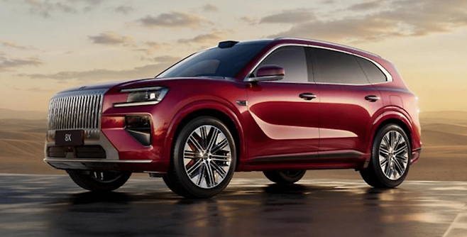 지커 8X의 차체 크기는 전장 5,100mm, 전폭 1,998mm, 전고 1,780mm, 휠베이스 3,069mm로 제네시스 GV80(전장 4,945mm, 휠베이스 2,955mm)을 전 방위에서 압도한다. 유럽형 BMW X5(G05)보다도 165mm 길다. 이 거대한 차체 덕분에 5인승과 6인승 레이아웃을 선택할 수 있으며, 트렁크 용량은 기본 1,133L에서 뒷좌석을 접으면 2,200L까지 확장된다. 2열에는 리클라이닝 시트와 후석 전용 OLED 디스플레이가 장착되고, 영국 프리미엄 오디오 브랜드 네임(Naim)의 29스피커 사운드 시스템이 실내를 감싼다. 공차 중량은 규제 서류 기준 2.8톤을 초과하지만, 강력한 파워트레인 덕분에 무게감을 전혀 느낄 수 없다는 평가다.