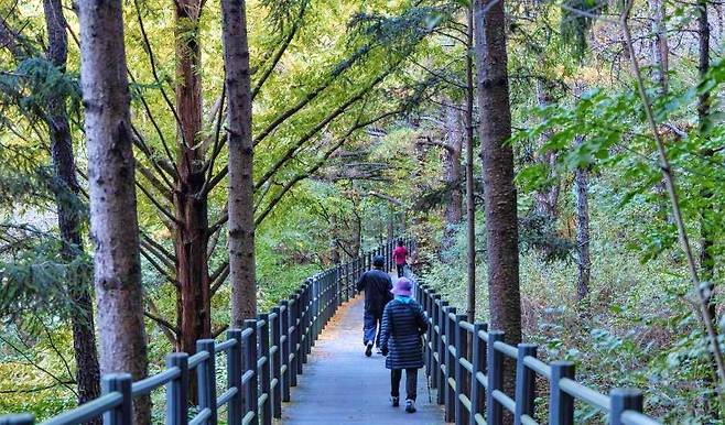 5코스) 홍제역에서 서대문자연사박물관까지 이어지는 3.3km 코스로, 메타세콰이아숲과 홍제천, 인공폭포 등을 지나며 숲의 매력을 집중적으로 느낄 수 있다.