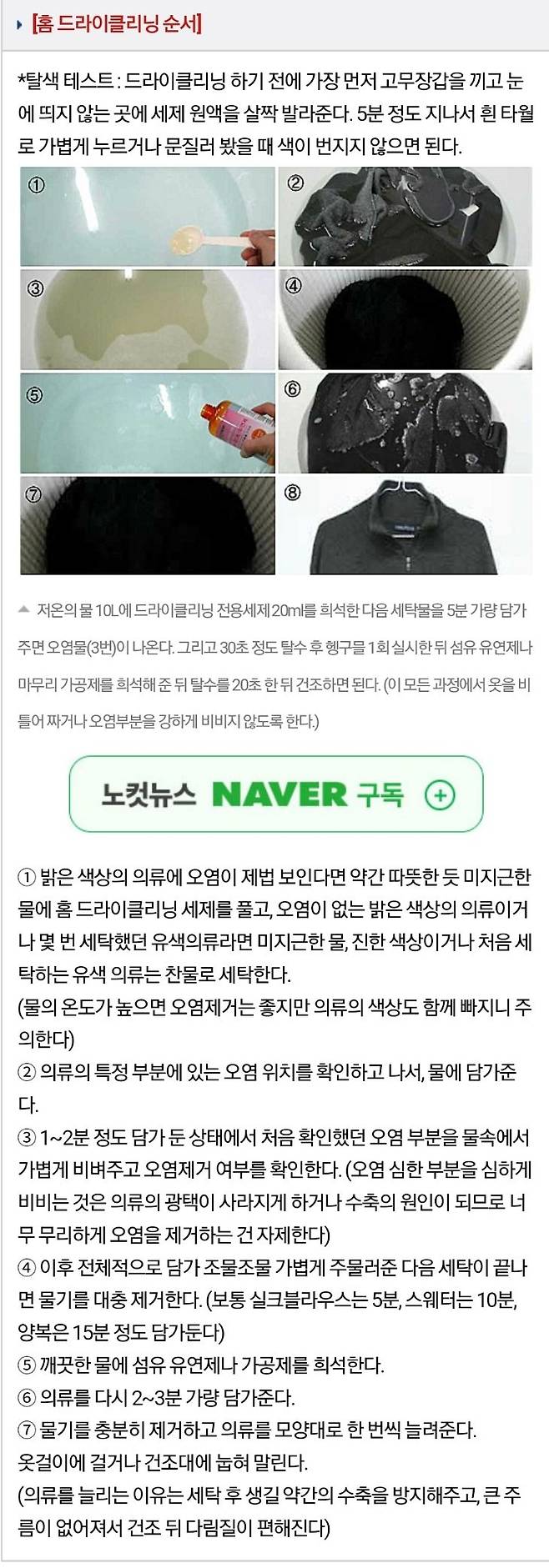 다시 말해 세탁소가 기름으로 옷의 오염물질을 벗겨 낸다면 집에서는 물로 씻어낸다고 보면 된다. 오염제거 측면에서는 물로 씻는 홈 드라이클리닝이 훨씬 우수하다.
