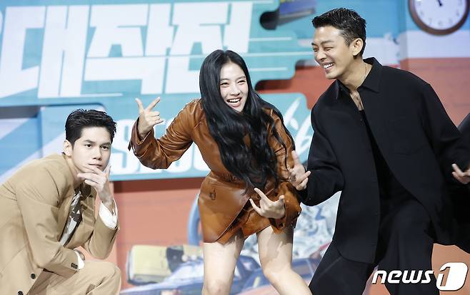 (서울=뉴스1) 권현진 기자 = 배우 옹성우(왼쪽부터)와 박주현, 유아인이 23일 오전 서울 강남구 그랜드 인터컨티넨탈 서울 파르나스에서 열린 넷플리스의 영화 ‘서울대작전’ 제작보고회에서 포즈를 취하고 있다.