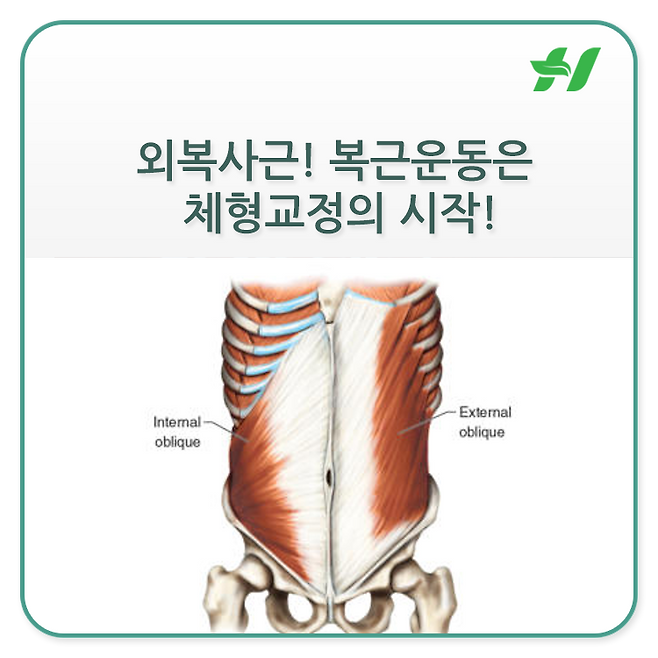 반면 한쪽의 외복사근을 사용하게 된다면반대쪽의 내복사근과 연결되어 같이몸통을 회전시키는 역할을 한다고 알려져 있죠~