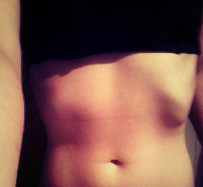 위에 사진은 체형교정이 필요한 사람인데요!외복사근이 한쪽만 약하다면 근육이 붙어 있는 위치인갈비뼈를 잡지못하며 갈비뼈가 떠있는 모습을 보이게 됩니다.사진에서 보면 배의 왼쪽의 갈비뼈가 오른쪽에 비해 많이 솟아있는 모습이 보입니다~이런경우에는 척추의 회전이 동반될 가능 성이 굉장히 높죠~