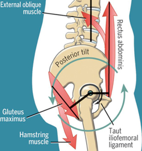 외복사근이 좌우 모두 사용하게 된다면복직근과 둔근과 함께 같이 골반을 후방경사(posterior tilt)를하게 만드는 근육으로 알려져 있습니다~