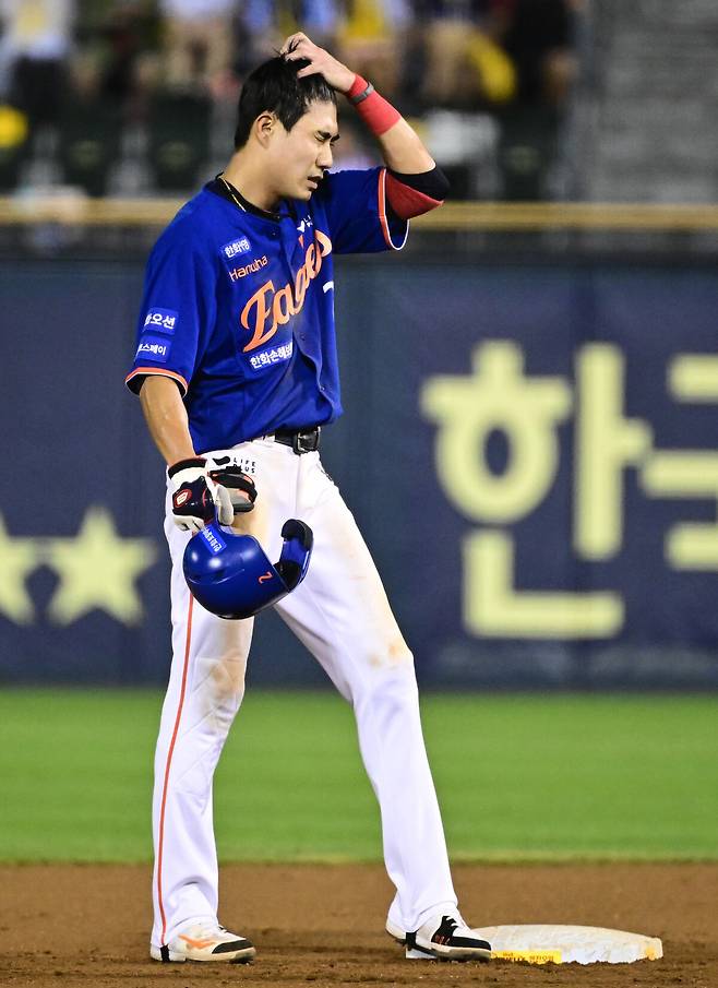 유격수 보강을 위해 4년간 50억 원을 투자했다. 어렵게 영입했다. 그런데 정작 가장 필요한 순간에 도움이 안 된다. 이날도 선발에서 제외된 뒤 끝내 출장하지 못했다. 내내 벤치에서 패배를 지켜봐야 했다. (이도윤 3타수 무안타)
