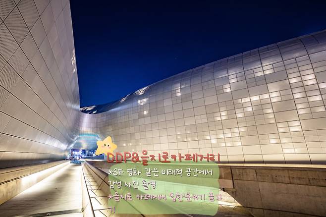 서울에서 가장 미래적인 느낌을 주는 장소 중 하나인 동대문디자인플라자(DDP). 독특한 건축미 덕분에 밤에는 네온사인과 어우러져 SF 영화 같은 분위기를 자아내는 서울 여행지인데요. 여기에선 다양한 전시도 열려 무료 혹은 저렴한 입장료로 문화 생활까지 즐길 수 있는 것이 포인트!