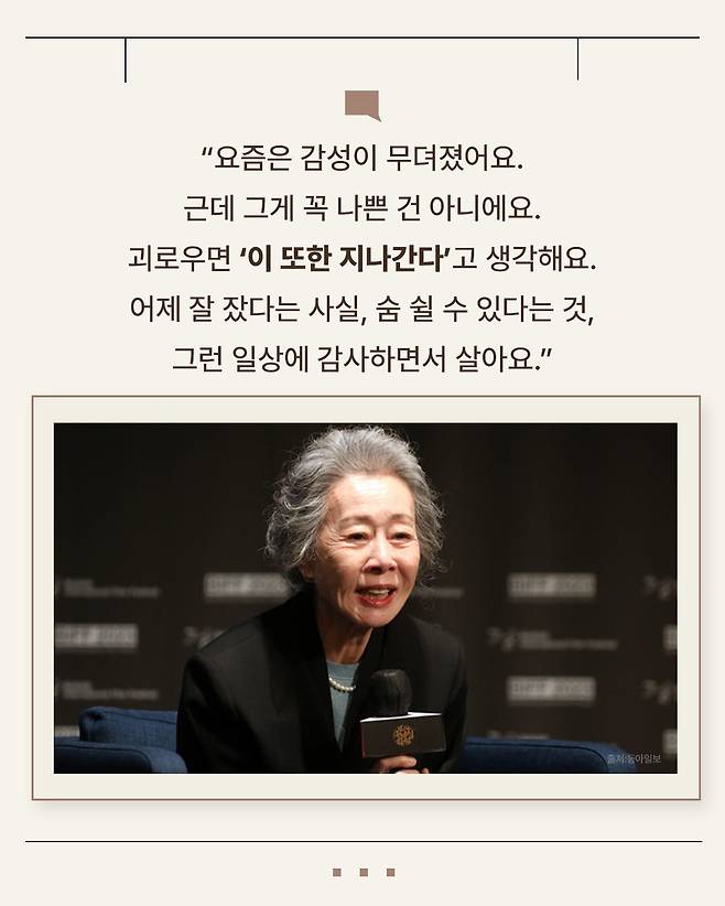 배우 윤여정이 말하는 나이가 들수록 필요한 ‘이것’