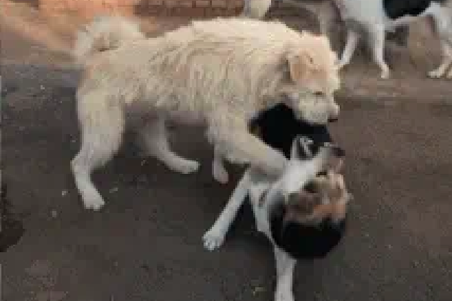 사실 이 긴 털의 '개 왕'이 싸움을 건 검은 개를 발아래 밟기 전까지는 덩치 큰 검은 개가 왕인 줄 알았습니다. 정말 '개는 겉모습만 보고 판단할 수 없다'는 교훈을 다시 한번 깨닫게 됩니다! 두 마리 모두 정말 대단한 개들입니다.