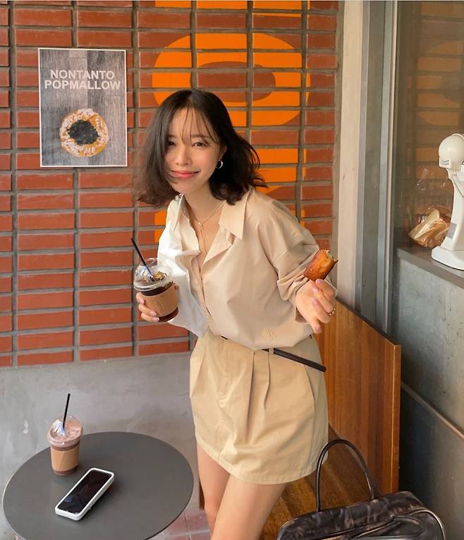 여기에 이솔이는 연한 브라운 미니스커트를 매치해 청초하고 페미닌한 이미지를 돋보였습니다.