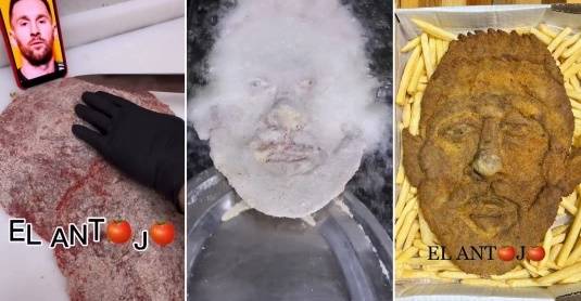 셰프는 고기를 메시 얼굴 모양으로 반죽하고 튀김 가루를 묻힌 뒤 기름에 튀기면서 "이건 우리가 최고의 선수 리오넬 메시에 대한 사랑으로 '밀라메시'를 만드는 방법"이라고 소개했다.