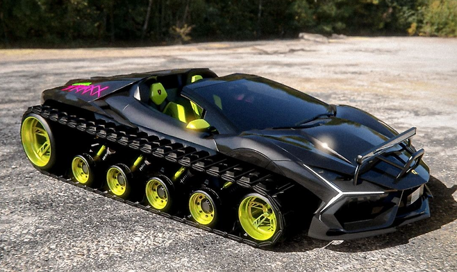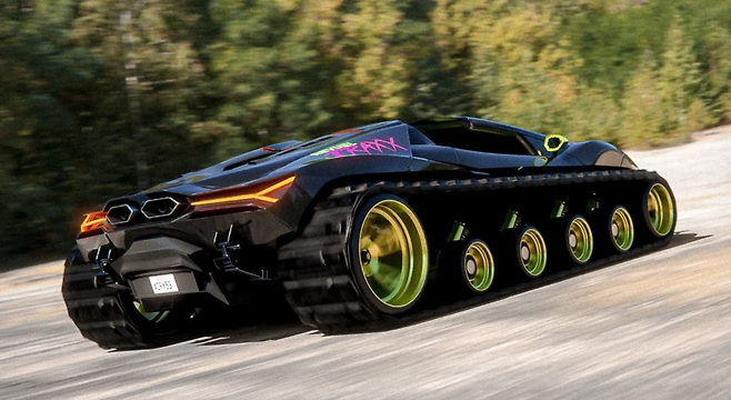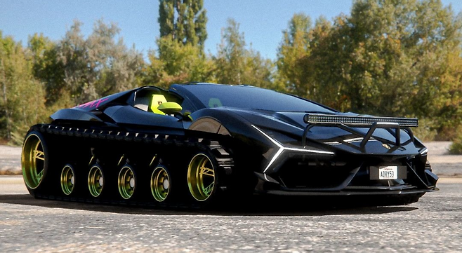 인스타그램 계정 @Adry53customs는 최근 트랙 바퀴를 장착한 새로운 플래그십 람보르기니 슈퍼카의 렌더링을 공개했다. 람보르기니를 탱크와 닮은 모습으로 변신시키기 위해 수많은 가상의 절단 작업과 트랙 세트를 설치하는 작업이 CGI 편집 기술로 진행됐다.
