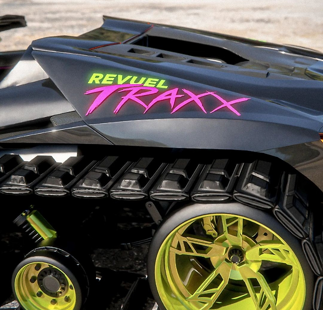 픽셀 아티스트는 이 가상의 프로젝트를 ‘RevuelTRAXX’라 지칭하며, 트랙 외에도 노즈에 부착된 맞춤형 마운트의 굵은 라이트 바와 열린 차체 상단을 통해 하늘을 볼 수 있는 기능을 선보인다.
