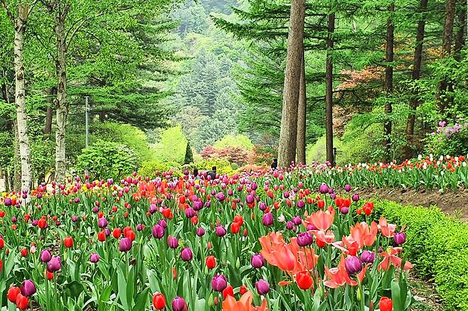 특히 봄이면 철쭉동산과 튤립정원이 압도적인 색채로 관람객을 사로잡고, 등나무 터널은 자연이 만든 아치형 회랑처럼 이국적인 풍경을 선사한다.