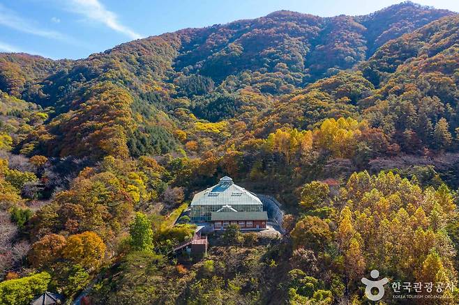 150ha(45만 평)가 넘는 너른 숲 속에 30만 그루 이상의 나무가 자라고 있는 대아수목원은 가을이면 은빛 억새, 붉은 단풍, 주홍빛 영산홍이 어우러지며 사계절 중 가장 화려한 풍경을 선사합니다.