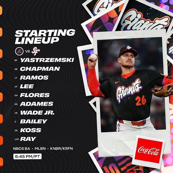샌프란시스코는 14일(이하 한국시간) 미국 캘리포니아주 샌프란시스코의 오라클 파크에서 열리는 2025 메이저리그(MLB) 정규시즌 애리조나 다이아몬드백스전을 앞두고 선발 라인업을 발표했다.