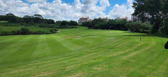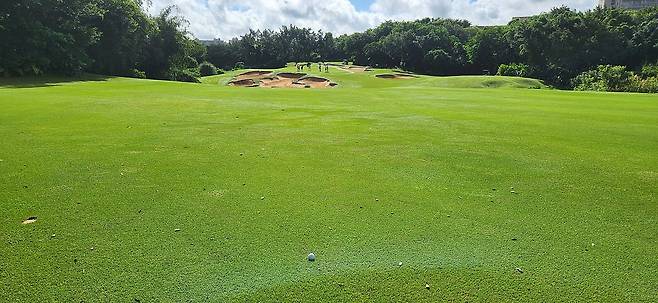 러프 역시 양잔디로 구성되었고 잔디 길이는 다행히 길지는 않습니다. 하지만 약간 끈적해서 자칫 클럽헤드를 잡아챌 수 있습니다.