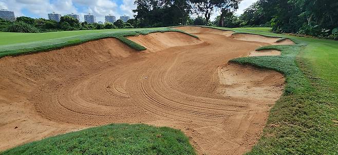 벙커 개수는 정말 많은듯합니다. 모래는 가끔 내리는 비로 무거울듯하지만 자주 관리해서 항상 라이가 좋습니다.