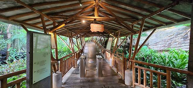 리조트 내부에 있는 수영장과 스파로 이어지는 산책로.