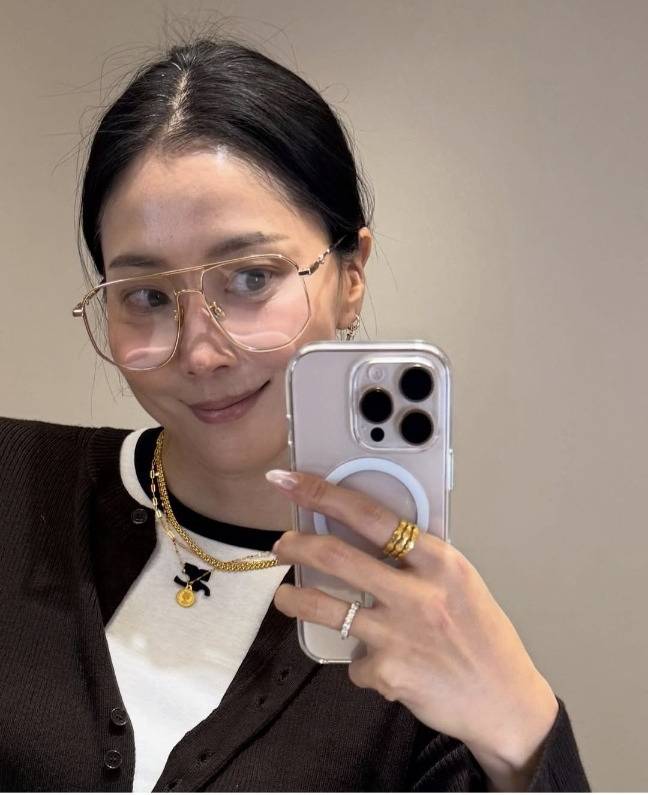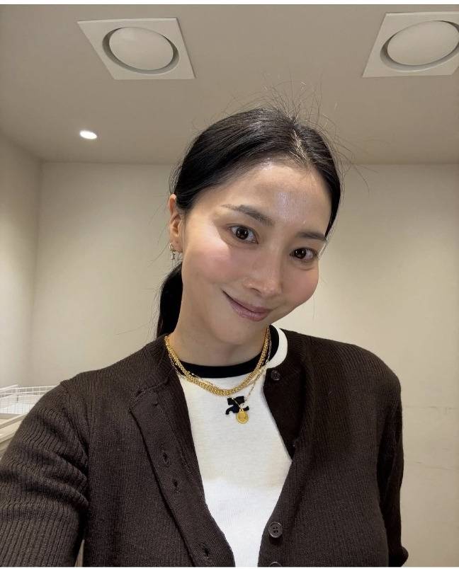 오윤아는 고급스러운 순금 액세서리로 클래식하면서도 세련된 캐주얼룩을 연출했습니다.