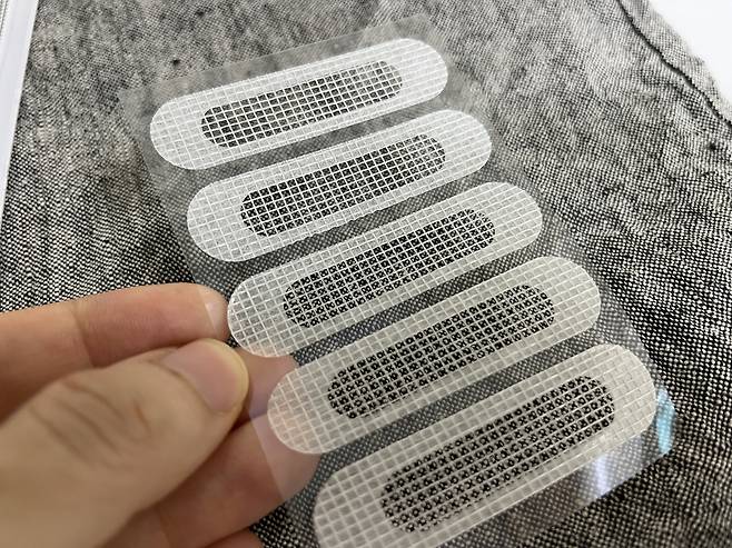 다이소에서 구매한 물구멍 스티커입니다. 일반 테이프나 스티커와 달리 단단하고 방충망과 비슷한 재질이라 내구성이 좋아 보입니다.