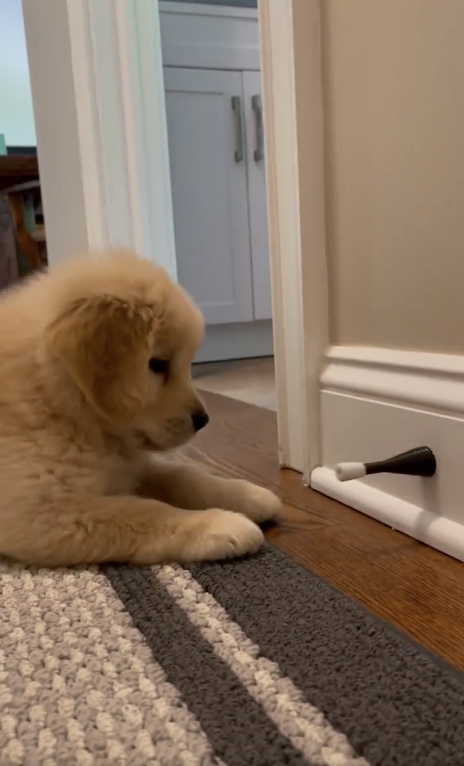 문 스토퍼로 문 쾅 방지하려고 했을 뿐인데, 이 주인은 강아지 장난감까지 같이 찾은 듯합니다. 이렇게 하루를 보냈다면 강아지는 굉장히 피곤했을 것만 같네요. 강아지는 스토퍼가 무서운 게 아니라는 걸 언제 알게 될까요?