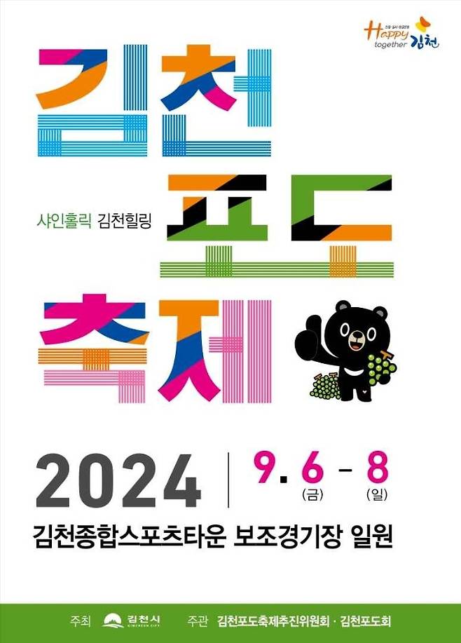 9월 6일부터 8일까지 김천 종합 체육공원 보조경기장 일원에서 달콤한 김천 포도 축제를 개최한다.