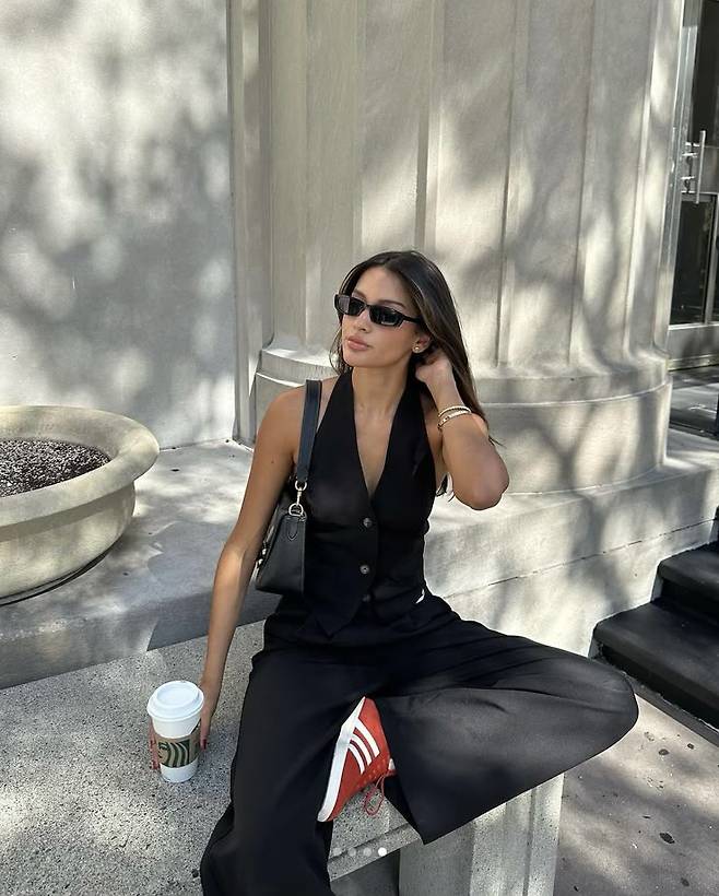 예를 들어 올블랙 슬리브리스 + 데님 팬츠 조합에 오버사이즈 선글라스를 더하면