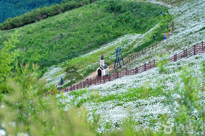 특히 6월이면 샤스타데이지가 만개해 장대한 초원이 순백의 꽃물결로 바뀐다. 데이지는 ‘계란프라이꽃’이라는 별칭으로도 불리며, 그 단순하면서도 청량한 매력으로 가족 단위 방문객은 물론, 감성 여행자들의 발길을 이끈다.