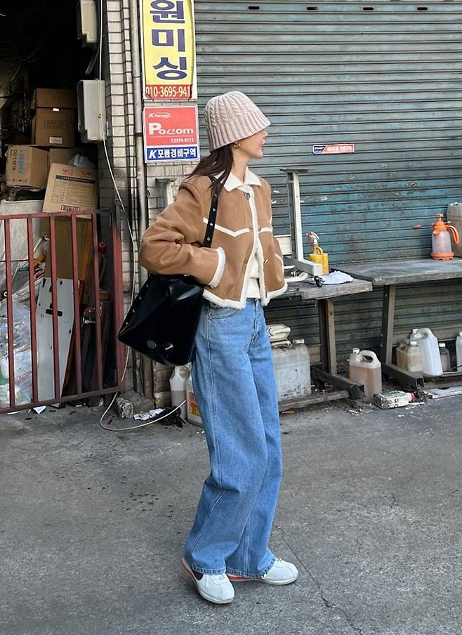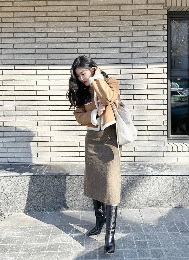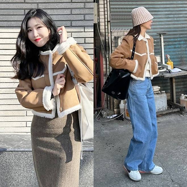 공개한 사진에서 이해리는 베이지 시어링 재킷에 7부 길이의 헤링본 스커트를 매치해 우아하면서도 단아한 느낌을, 강민경은 베이지 시어링 재킷에 데님 팬츠를 입고 버킷햇을 매치해 여리여리하면서도 캐주얼한 분위기를 완성했다.