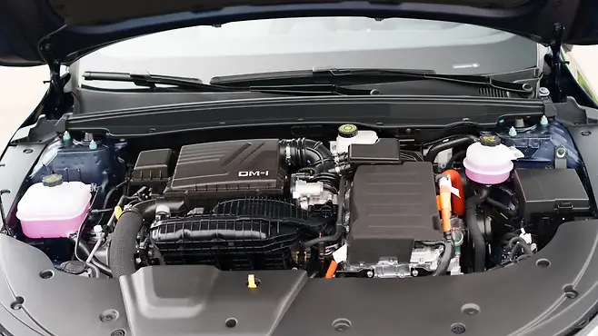 Seal 05 DM‑i는 **1.5L NA 엔진(74 kW, 99마력)**과 **120 kW 전기모터(161마력)**가 결합된 DM‑i 5.0 하이브리드 시스템을 탑재한다.