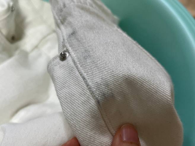 흰 옷은 여러 번 입으면 누레질 뿐만 아니라 이염이나 오염이 쉽게 발생합니다. 검게 이염이 발생한 흰 바지도 이렇게 했더니 말끔히 없어지더라고요.