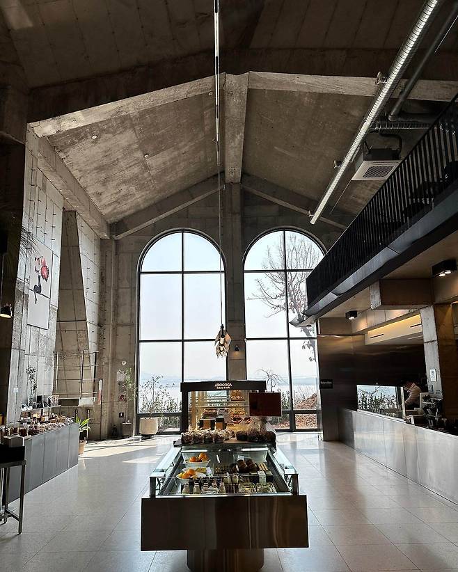 '아보고가'는 피라미드를 연상케 하는 이색적인 인테리어로 인기가 좋은 곳이다. 웅장함이 느껴지는 외관과 층고가 높은 실내는 커피 한 잔을 하기에 더없이 좋다. 1층은 디저트와 빵, 케이크를 한 눈에 볼 수 있게 세팅되어 있고 다양한 음료가 있어서 취향에 따라서 선택이 가능하다. 건물을 배경으로 해외에 온 듯 한 인생샷도 가능하니 방문하기 좋다.