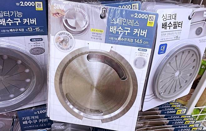 가격은 2,000원입니다. 2,000원에 내돈내산 구매해서 삶의 질을 상승시켜준 제품입니다. 배수구 직경 14.5cm로 너무 작은 배수구 아니면 거의 맞을 듯합니다.