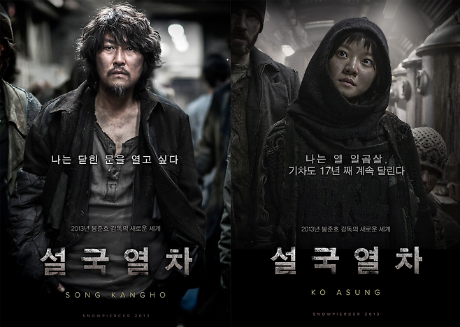 줄거리: 지구온난화를 막기 위한 시도가 오히려 기상 이변을 일으켜 꽁꽁 얼어붙어 버린 지구. 난방과 식량 자급이 가능하고 무한히 궤도를 달릴 수 있도록 설계된 기차가 설원 위를 달리고 있습니다. 지구 최후의 생존자들을 태운 기차 안은 계급 체계와 불평등이 한층 심화되어 있고, 이 기이한 사회의 하층민으로 긴 세월 억압받은 꼬리 칸 승객들은 마침내 폭동을 일으키기에 이릅니다.