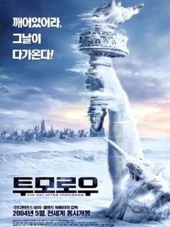 줄거리: 기상학자인 잭 홀박사는 남극에서 빙하 코어를 탐사하던 중 지구에 이상 변화가 일어날 것을 감지하고 급격한 지구온난화로 인해 지구 전체가 빙하로 뒤덮이는 거대한 재앙이 올 것이라고 경고합니다. 하지만 잭의 말은 무시당하고 상사와의 갈등만 일으키게 됩니다. 얼마 후 아들이 탄 비행기가 이상 난기류를 겪게 되고 일본에서는 우박으로 인한 피해가 TV를 통해 보도되는 등 지구 곳곳에 이상 기후 증세가 나타나게 됩니다.