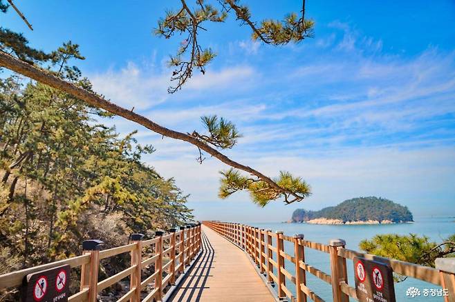 산책로는 깔끔한 나무 데크로 조성되어 있어 남녀노소 누구나 무리 없이 걸을 수 있다. 특히 연결된 소나무숲 구간에서는 울창한 송림과 서해의 절경이 어우러진 풍경을 감상할 수 있다.