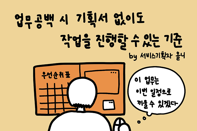 서비스 기획자 올니, 각 팀원의 업무의 공백이 생기지 않도록 하기 위해