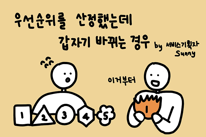 업무를 진행하면서 제가 설정했던 우선순위가 바뀌게 되는 경우도 있는데, (대표님 지시사항, 고객사 요구사항 등) 이런 경우가 가장 난감한 것 같아요.
