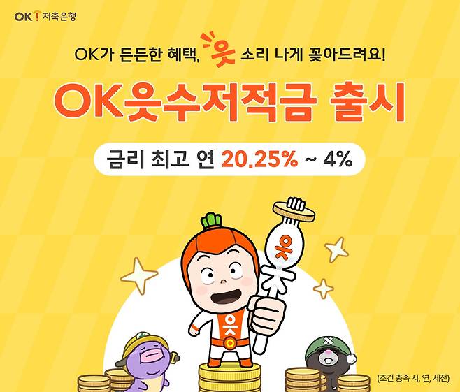 OK저축은행 관계자는 “OK읏수저적금은 소액부터 시작할 수 있는 적금상품으로, 실천 가능한 저축 습관 형성을 도와 ‘세상의 모든 읏수저를 응원합니다’라는 캠페인 메시지를 현실 속 혜택으로 연결하고자 기획했다”며 “앞으로도 OK저축은행은 금융소비자들과 진정성 있게 소통하는 브랜드가 될 수 있도록 금융 그 이상의 경험을 만들어 나가겠다”고 말했다.