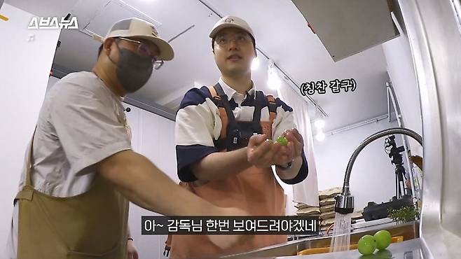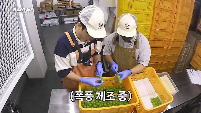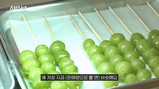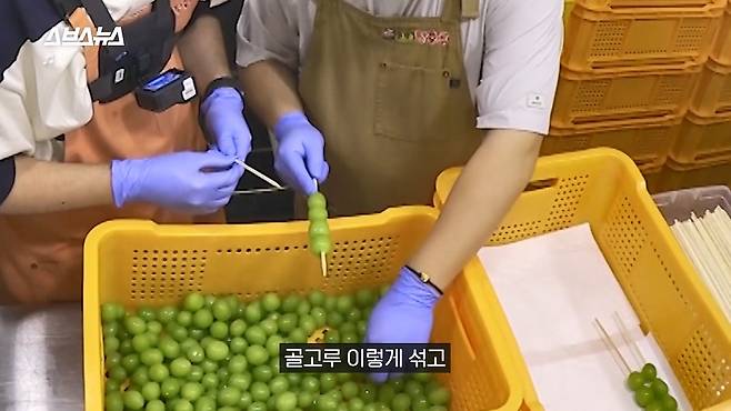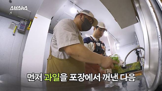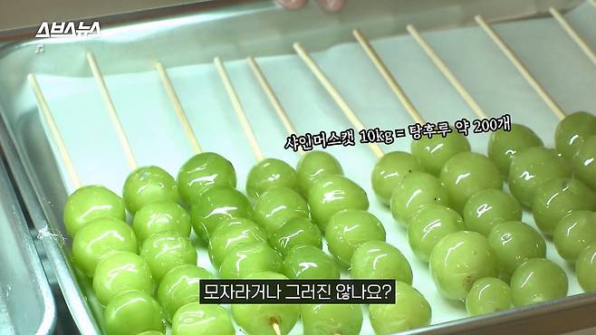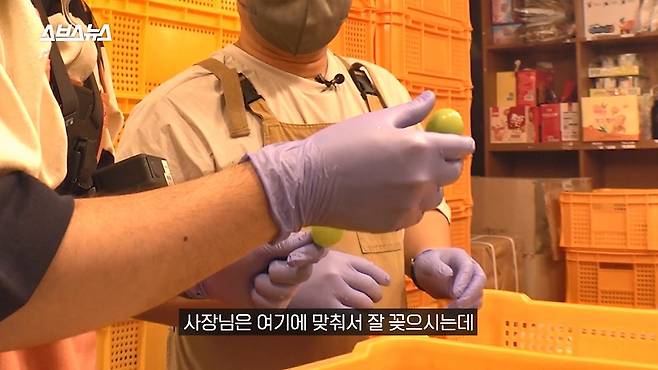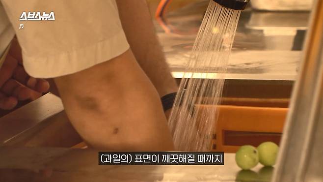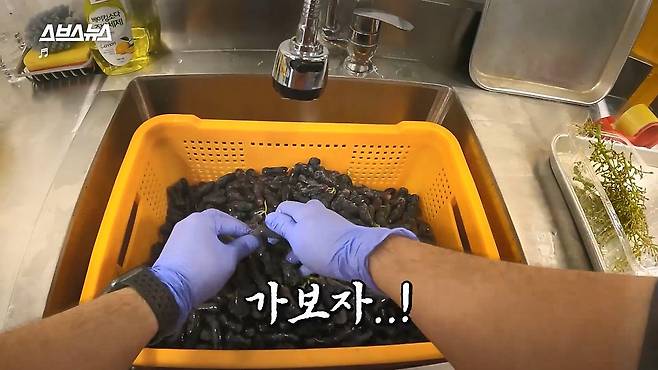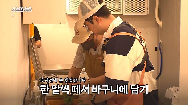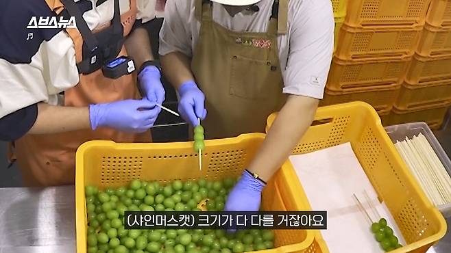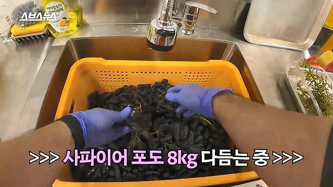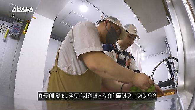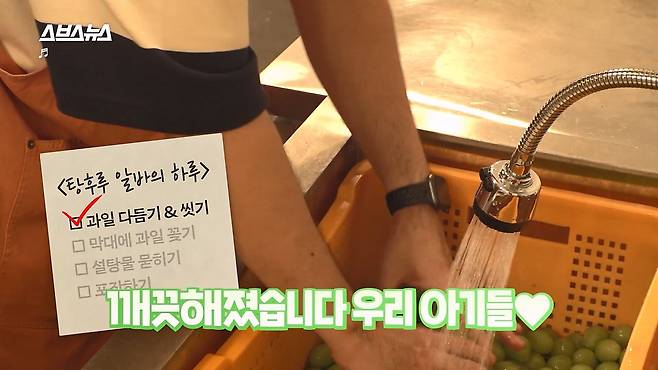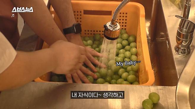 "지금 샤인 머스켓을 일단 세척해야 하거든요"