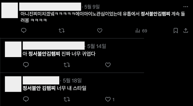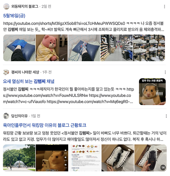 트위터와 네이버 블로그에도 ‘정서불안 김햄찌’가