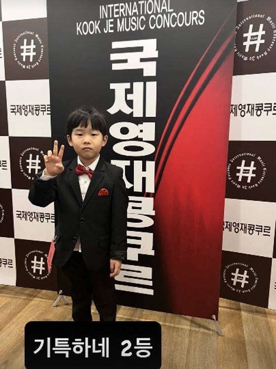 영상 속 하음 군은 연주복과 나비넥타이를 갖춰 입은 채, '국제 영재 콩쿠르' 배너 앞에서 포즈를 취하고 있었다.
