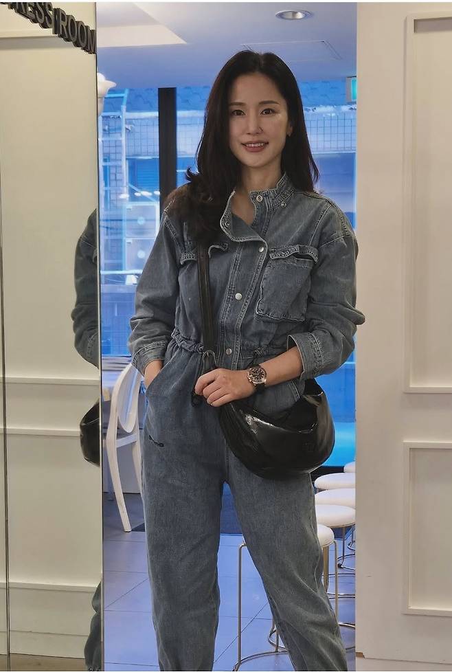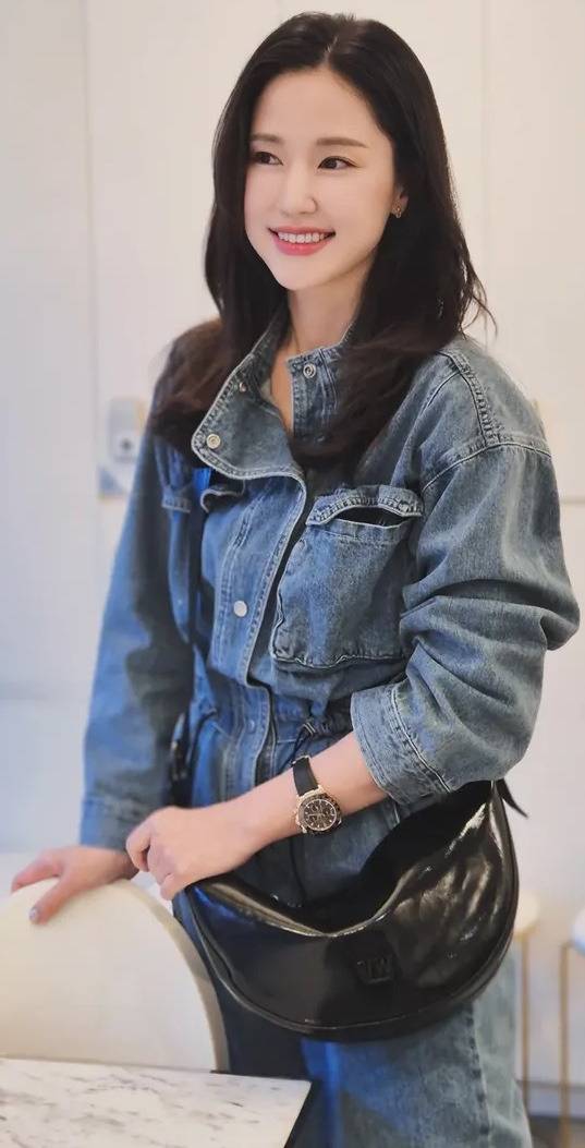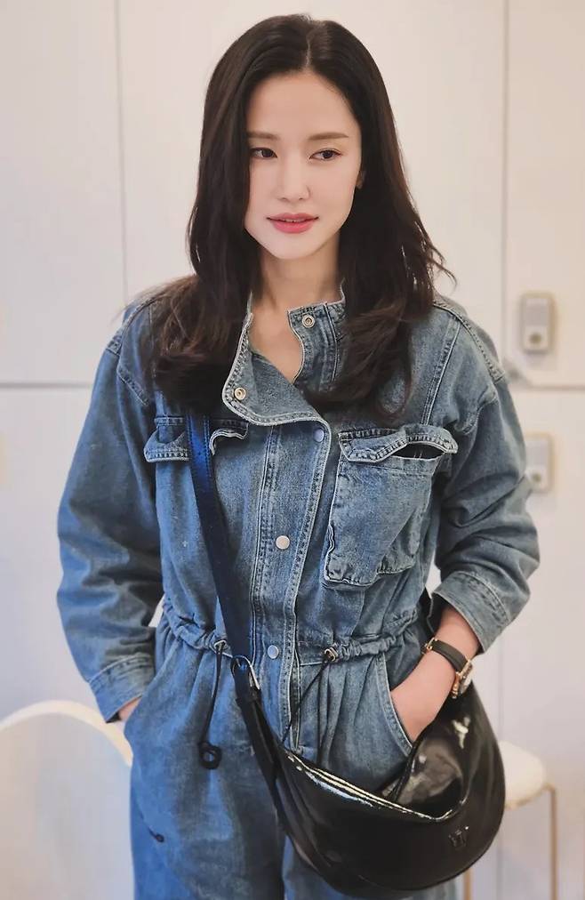 공현주는 빈티지 무드와 실용미를 동시에 담은 데님 점프슈트 스타일을 선보였습니다.