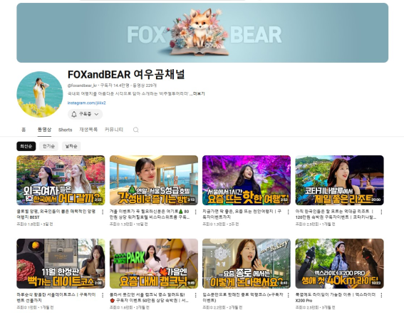 ‘FOXandBEAR 여우곰채널‘은 국내외 여행지를 추천해주는 채널이다.