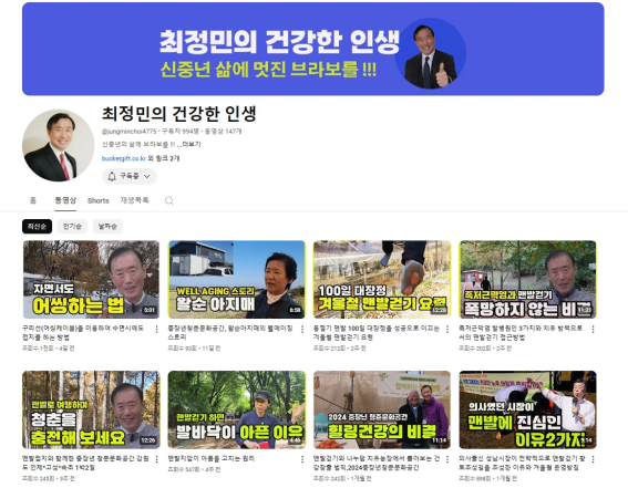 최정민 크리에이터는 말 그대로 건강한 인생을 위한 꿀팁을 전수하는데, 주로 맨발걷기를 실천하고 있다. 엄지척!을 날리는 채널 배너를 보면 벌써부터 건강해지는 기분!